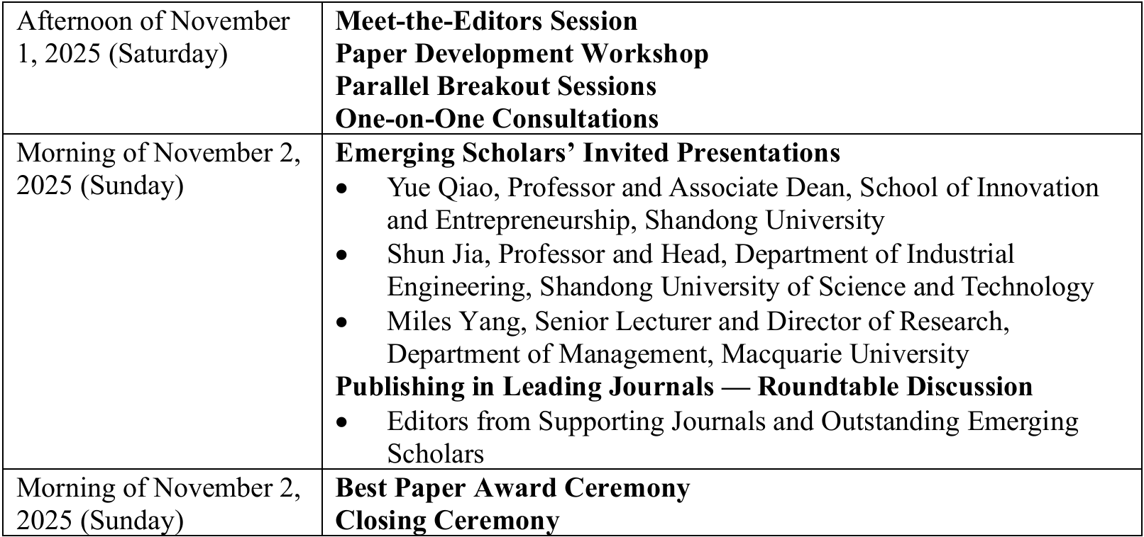 Selected papers will be assigned to the corresponding journal PDWs for discussion; papers not selected for a PDW will be scheduled for regular parallel sessions at the conference.